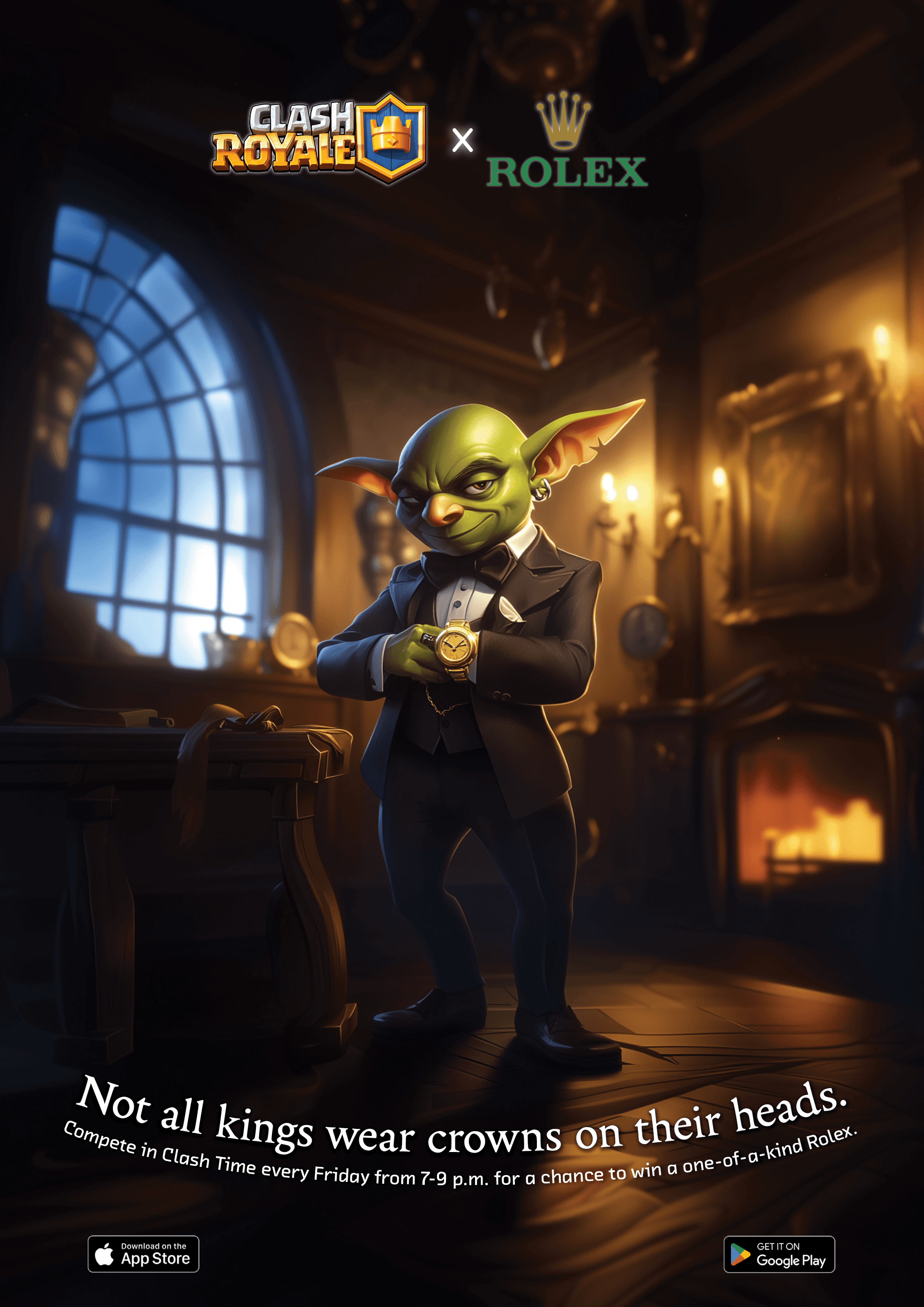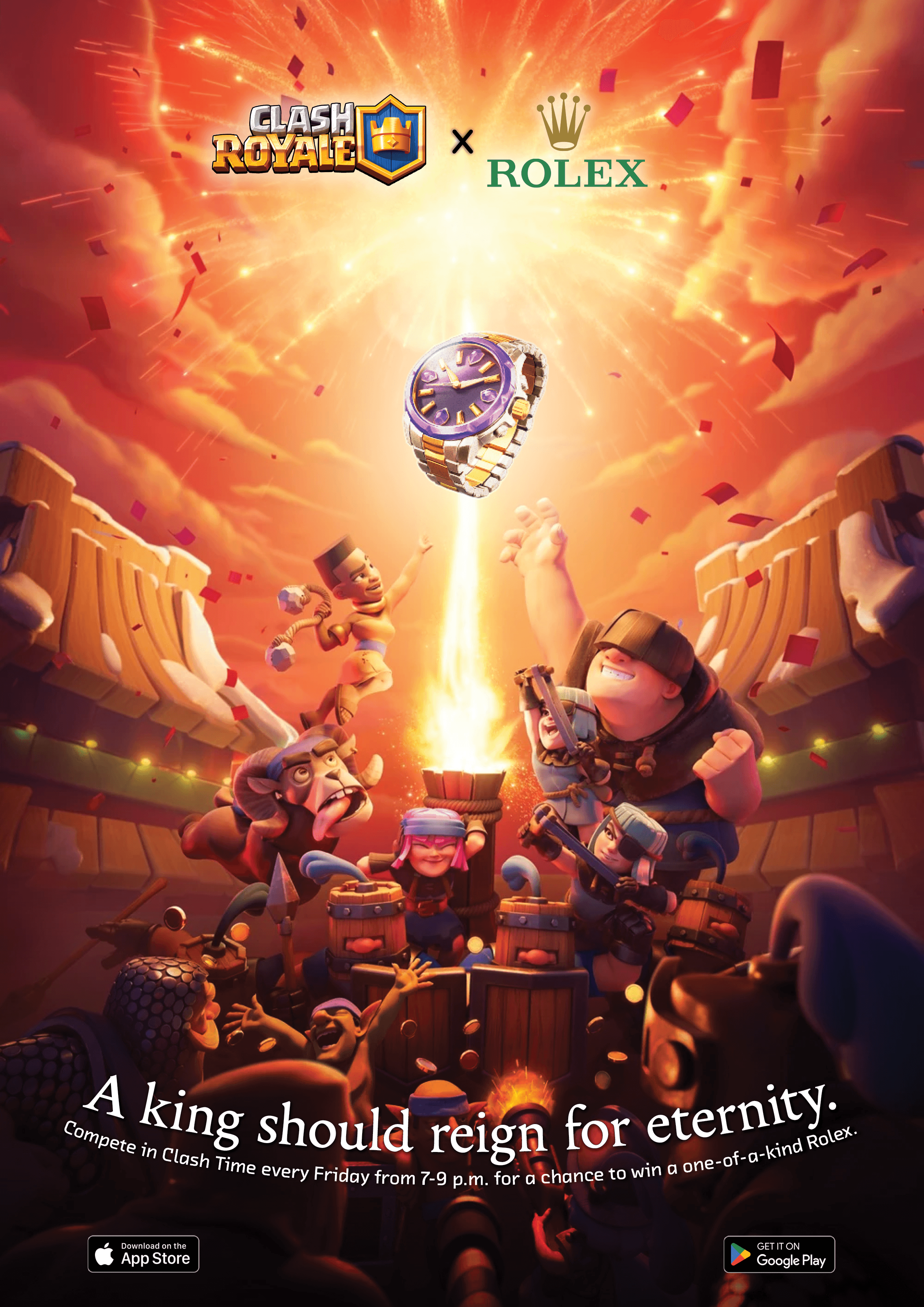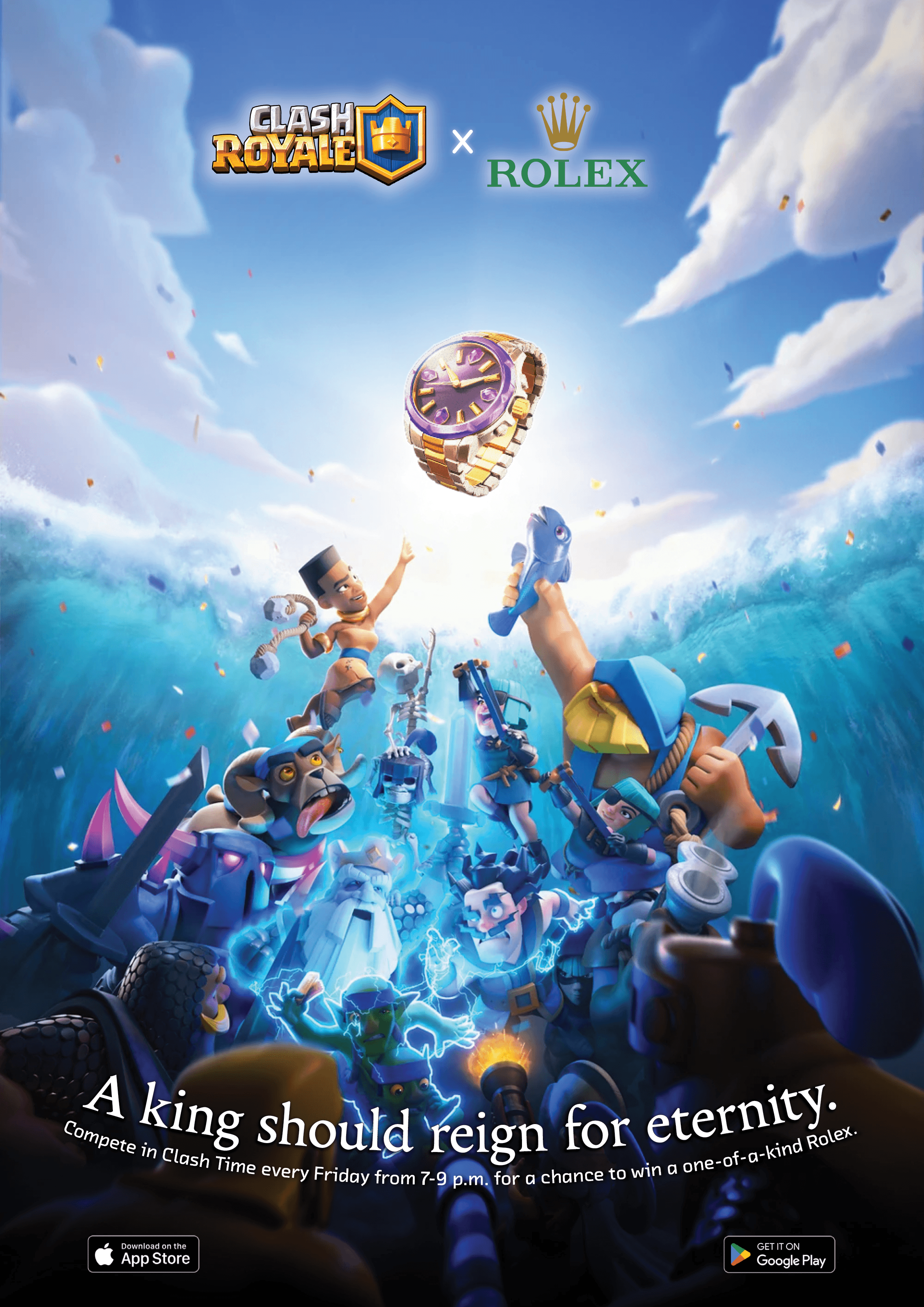 Clash Royale players know that claiming victory is about split-second decision making and precision timing. So we’ve partnered with Rolex to introduce Clash Time, a weekly tournament each Friday from 7-9 p.m. Weekly winners will be invited to compete for a one-of-a-kind watch, The Kingmaker. A watch that marks you as a winner, forever.